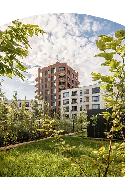 V citlivé moderní části najdete byty od malých přes rodinné bydlení s předzahrádkami po velkorysé penthousy s terasami.