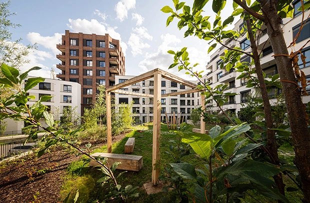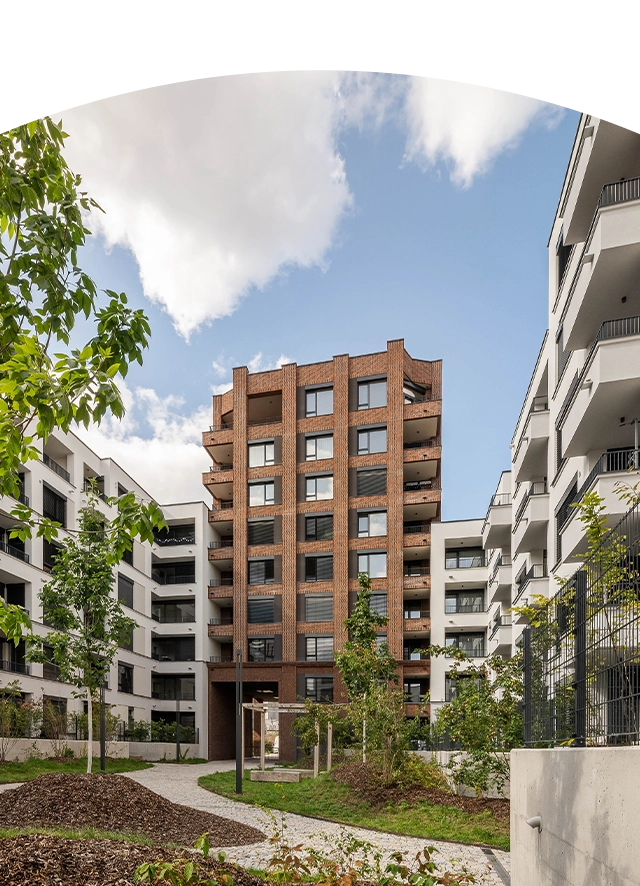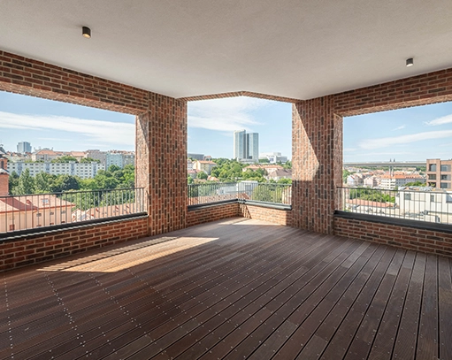 V citlivé moderní části najdete byty od malých přes rodinné bydlení s předzahrádkami po velkorysé penthousy s terasami.