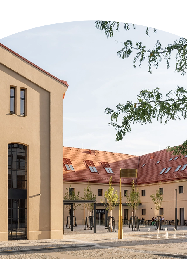 Revitalizací celého areálu vzniká komorní čtvrť přirozeně propojující bydlení s veřejným prostorem plným zeleně, nákupní možnosti s privátními zákoutími a tradici s moderními nároky. To vše pod taktovkou architektů a urbanistů CMC Architects a Chybík + Krištof.